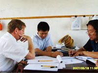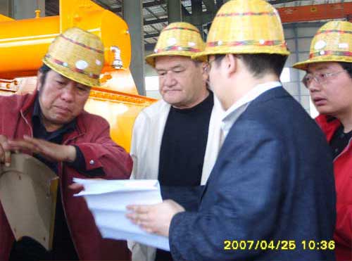 | 公司领导与客户商讨技术问题 | 公司领导与国外客人进行技术交流  |             车间一隅  |