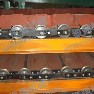 - 多底板往复式输送机采用大节距滚针弯板链为输送介质