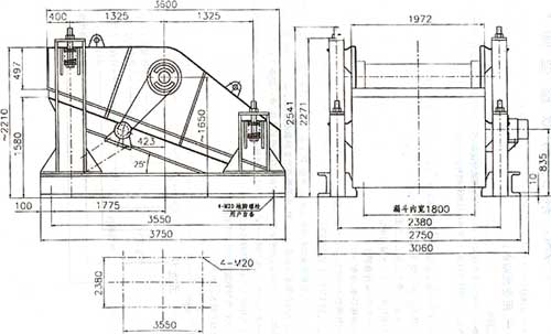 图7 SZZ1800×3600自定中心振动筛安装尺寸
