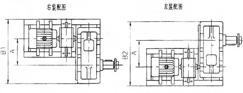 - 右装一站在电动机尾部向前看,减速器低速轴在电动机的右侧。