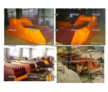 - 振动喂料机在生产流程中,可把块状、颗粒状物料从贮料仓中均匀、定时、连续地给到受料装置中去,在砂石生产线中可为破碎机械连续均匀地喂料,并对物料进行粗筛分,广泛用于冶金、煤矿、选矿、建材、化工、磨料等行业的破碎、筛分联合设备中。