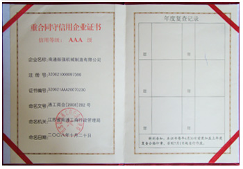江苏振强机械科技股份有限公司 >> 公司简介 >> 资质证书一号彩票 >> 重合同守信用企业证书