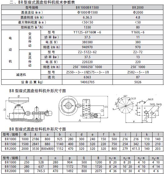 BR座式圆盘给料机适合圆盘给料机喂送的物料有:煤粉、水泥、熟料、石灰石、粘土等粉状、粒状或小块状物料。BR型圆盘给料机为座式封闭式给料机,适用于空气净化程度要求不高的场合。