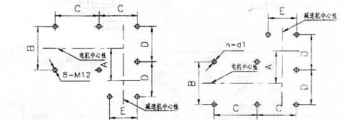 | 驱动装置 | 电动机 | 减速器 型 号 | A | B | C | D | E | n-d1 | H | H1 | H1 | K | L | L1 | L2 | B1 | B2 | b | t | d | 重量 kg | |
