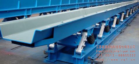 我们振强振动机械公司生产的耐高温水平振动输送机采用两台振动电机作为激振动源,运用自同步原理,两台振动电机反向转动,使输送机底部平衡架产生往复振动,经过主振簧与导向板簧的作用,带动上部输送槽振动,从而达到输送物料的目的。该类型振动输送机广泛应用于矿山、冶金、建材、煤炭、化工、粮食、医药等行业且温度在300℃ 以下的各种粉状、粒状、块状及其混合物等物料的输送。